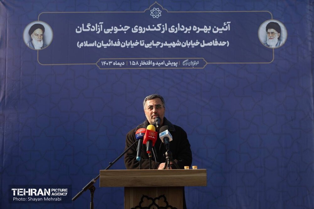 مهدی صداقتی مدیرعامل سازمان مهندسی و عمران شهر تهران در ابتدای این مراسم، پیرامون جزئیات این پروژه گفت: به جهت تعدد پروژهها در این دوره سعی میکنیم مراسم افتتاحیه طرحها را ساده و هرچه سریعتر برگزار کنیم. ما چند پروژه از جمله کندروی شمالی و جنوبی بزرگراه آزادگان را در دو منطقه ۱۶ و ۲۰ داشتیم که سهم بسزایی در کاهش ترافیک این مناطق داشته است.